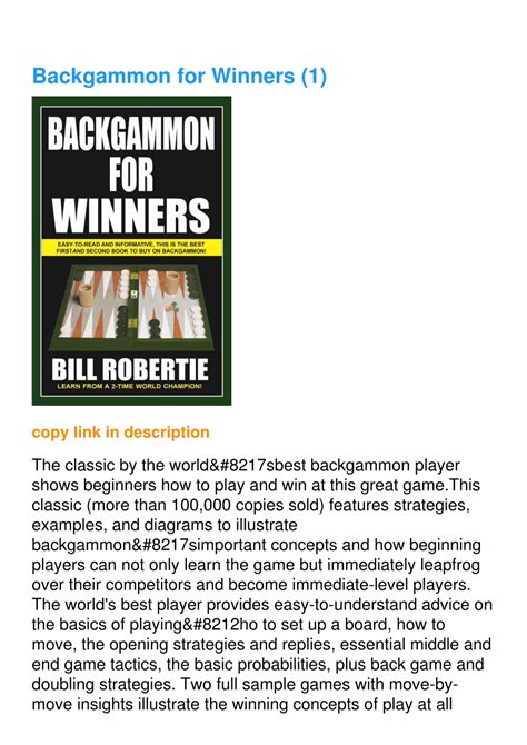Read Online Backgammon for Winners (1) Audio CD ManyBooks